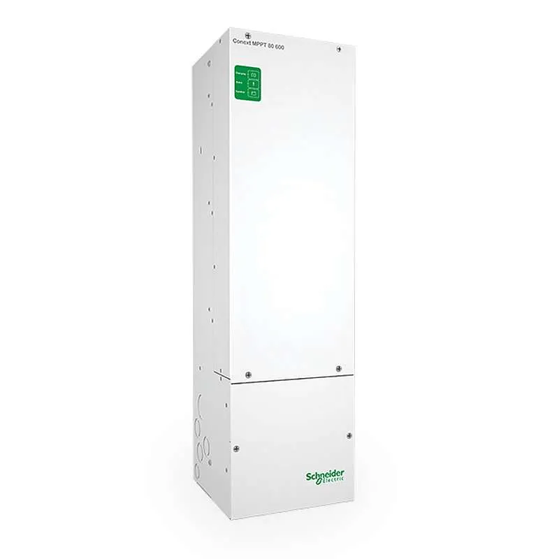 The Conext MPPT 80 600 solar charge controller offers an industry-first set of integration features and top performance that allows for large PV array systems to be easily installed and connected to the battery bank at the lowest overall cost. Installing one MPPT 80 600 is faster than installing multiple smaller charge controllers and lowers overall costs further by utilizing fewer PV strings, smaller wiring and conduit, and by eliminating the need for PV combiner boxes and DC circuits breakers.